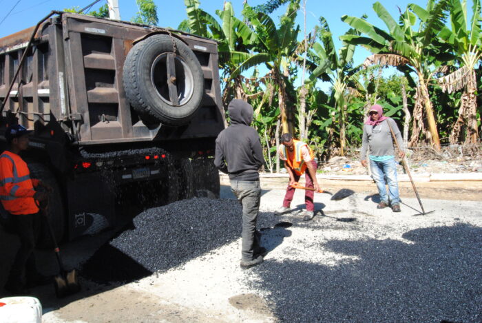 La Junta Municipal de Río Verde Arriba, Villa Cutupú, continúa desarrollando los trabajos de bacheo en el sector del Aljibe, específicamente frente a la Lomita, como parte del compromiso de mejorar las condiciones de las vías y garantizar una circulación más segura para conductores y peatones.