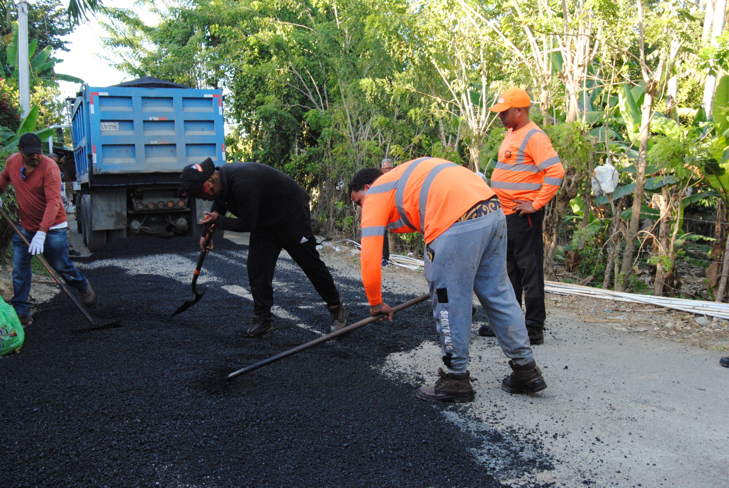 La Junta Municipal de Río Verde Arriba continúa los trabajos de asfaltado en el sector del Aljibe, como parte del plan de mejora y fortalecimiento de la infraestructura vial del distrito municipal.