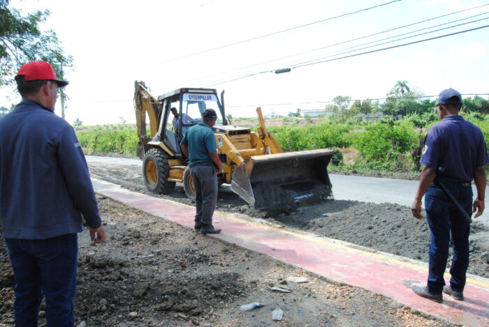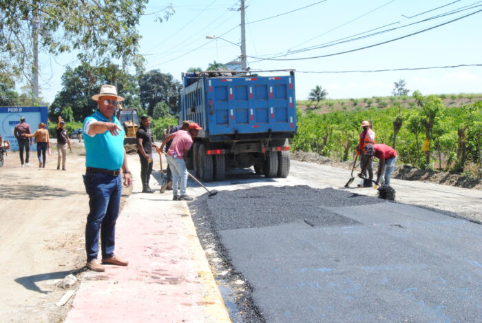 Asimismo, se ha trabajado en la entrada del Residencial Taveras, donde se ha procedido con el acondicionamiento de la vía. Esta intervención incluirá el bacheo de las áreas afectadas y, posteriormente, la aplicación de asfalto en los tramos deteriorados, asegurando así una vía más transitable y duradera.