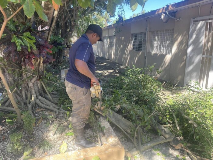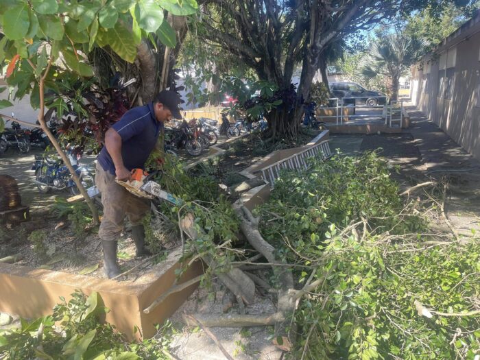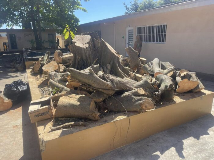 En el día de hoy, siguiendo las instrucciones de nuestro alcalde Robert Donald Tolentino Grullón, la brigada de Ornato y Aseo del Ayuntamiento llevó a cabo una jornada de corte y poda de árboles en el Liceo Manuel Acevedo Serrano de Cutupú.