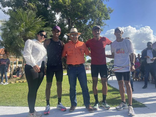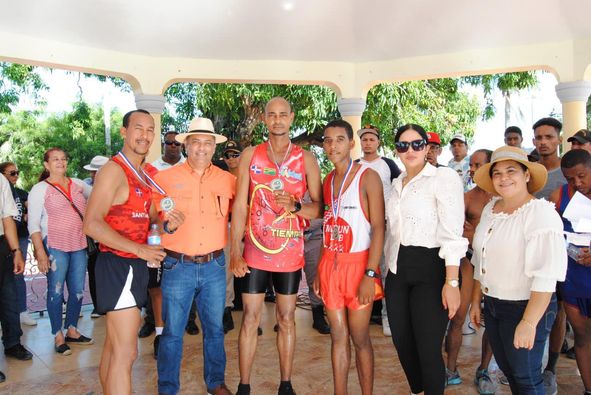 y su Alcalde Robert Tolentino, tras recorrer los 7 kilómetros y 195 metros en tiempo de 22 minutos y 57 segundos, con lo que se estableció como el primer ganador de la justa deportiva en la historia.