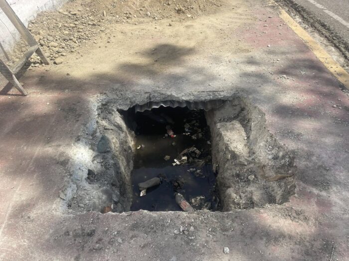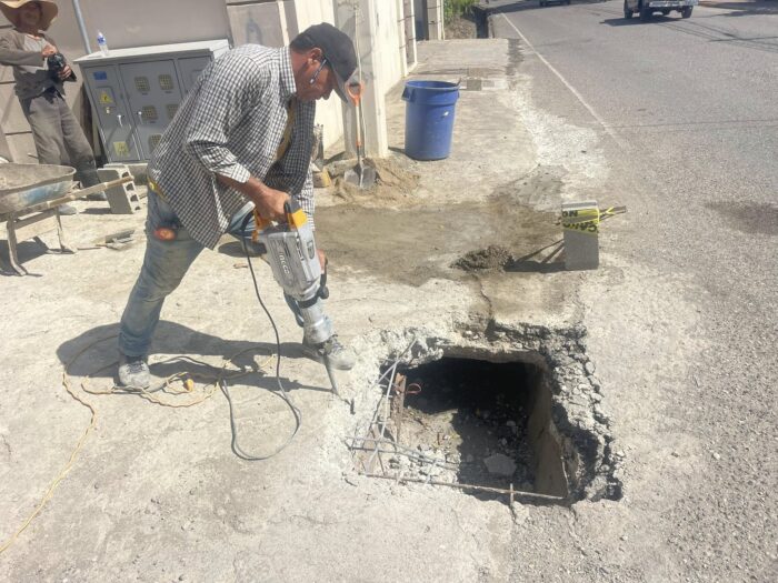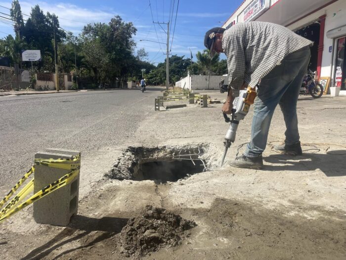 Bajo las directrices de nuestro alcalde, Robert Donald Tolentino Grullón, seguimos adelante con los trabajos de limpieza, reparación y mantenimiento de los conductos de desagüe en la calle principal, específicamente en las proximidades del cementerio municipal.